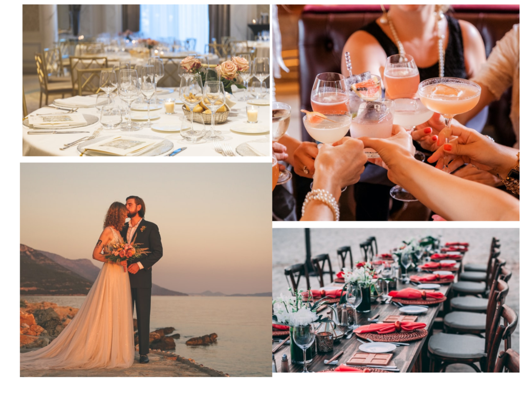 After your wedding ceremony, we can organize the celebration for you and your special guests. Always upon your preferences, you can choose between different types of cuisines for your reception menus and the Chef De Cuisine of the venue, will create a delicious food experience. A huge selection of wines from all over the world and champagne will conclude your celebration. When it comes to music, we can book a live band or a DJ or you can party with your own music lists.